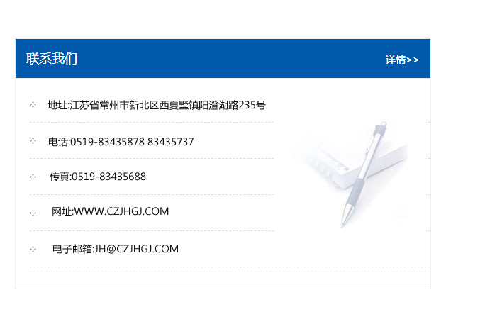 地址:常州市新北區友邦商務大廈1幢16、17層  電話:0519-85101652  傳真:0519-85112595  郵編:213022  網址:www_cz-jiayue_cn.haigoushu.com  郵箱:xiajifengaa@163.com
